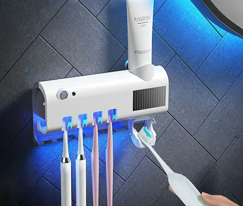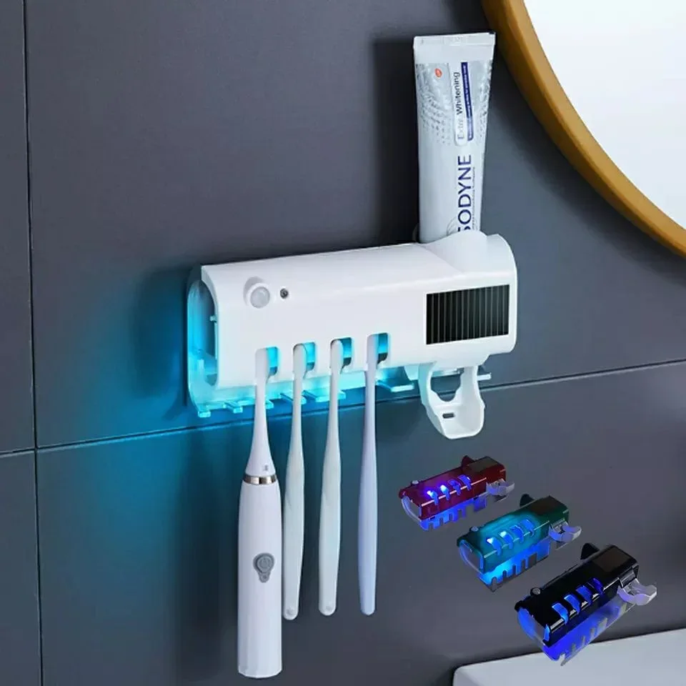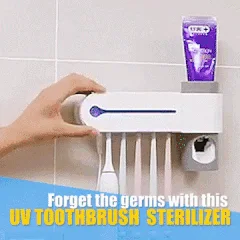 مجموعة حامل و معقم فرشاة الأسنان: 3 في 1 حامل فرشاة أسنان معقم للأشعة فوق البنفسجية: